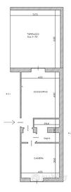 L'appartamento è composto da 2 locali, con una distribuzione interna ottimale che include un ingresso nel soggiorno con cucina a vista e terrazzo di 30 mq, disimpegno con ripostiglio in quota, ampio bagno e camera matrimoniale. con ambienti luminosi e ben curati.