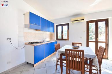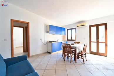 A pochi passi dai principali servizi e dalla piazza centrale, proponiamo in vendita un accogliente bilocale situato al secondo e ultimo piano di una graziosa palazzina. L'immobile al suo interno è composto da un ampio e luminoso soggiorno con cucina a vista, una camera matrimoniale e un bagno completo di box doccia. All'esterno, è presente un ampio terrazzo abitabile, ideale per trascorrere momenti di relax in compagnia di amici e familiari. L'appartamento, in buone condizioni, si trova a soli pochi minuti dalla splendida spiaggia della Rena Bianca. Completa la proprietà un comodo posto auto coperto, situato al piano seminterrato, di circa 11 mq.