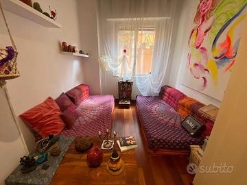 A Roma, in Via Mondragone, a 4 minuti a piedi dalla fermata Metro A "Colli Albani" e dai principali servizi di quartiere, privato propone in affitto con contratto transitorio annuale per lavoratori non residenti, un appartamento completamente ristrutturato e arredato con cura, a partire dal 3 maggio 2026. La casa è per una donna o per una coppia. No studenti, solo lavoratori con redditi dimostrabili. L'immobile, sito al piano seminterrato con ascensore al piano, è composto da un luminoso soggiorno con cucina a vista, salottino, una camera da letto, un bagno e un ampio terrazzo/giardino attrezzato ideale per momenti di relax. All'interno dell'appartamento è presente anche una piccola cameretta riservata alla proprietaria, che ne usufruisce soltanto 3/4 giorni al mese, garantendo così la piena fruibilità degli altri ambienti per il resto del tempo. A fronte di ciò l'importo del canone d'affitto è fortemente ridotto rispetto alle tariffe del quartiere ed al suo valore. Il canone richiesto è di € 880,00 mensili. Le spese condominiali ammontano a € 116 ogni due mesi, l'acqua è inclusa nel condominio e internet fibra ha un costo mensile di € 25. La TARI è a carico del conduttore. Le utenze di luce e gas sono a consumo (indicativamente: gas € 25 in estate/€ 150 in inverno, luce € 25-70 secondo uso personale). L'appartamento è arredato e dotato di riscaldamento autonomo controllabile da remoto tramite app e videocitofono ed è pronto all'uso.