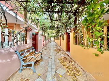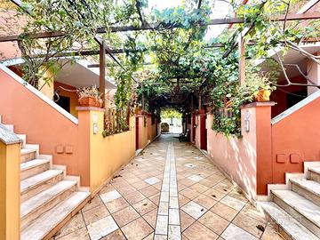 VILLASIMIUS - In zona residenziale pianeggiante e vicinissima ai servizi, all'interno di uno splendido complesso ricco di verde e ottimamente curato, appartamento bilocale al piano primo con veranda. Con ingresso da via Foscolo, percorso qualche metro di un corsello comune ad altre unità si accede alla proprietà privata tramite una comoda scala che porta alla terrazza coperta. Internamente l'immobile è composto da un pranzo-soggiorno luminoso, climatizzato, e arredato di parete cottura e comodo divano. Alla sinistra della zona giorno, un disimpegno ci conduce alla camera da letto matrimoniale e al bagno completo di doccia. L'immobile si presenta in ottime condizioni, è completamente climatizzato e viene venduto arredato. A completare la proprietà, nell'interrato, un box auto chiuso in garage comune. Aspetti fondamentali da tenere conto di questo immobile sono la tipologia piano terra, il buono stato manutentivo e la buona metratura del cortile esterno. Costi condominiali preventivati: 300 euro all'anno.