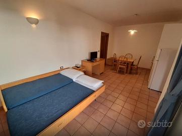 Bilocale 4/5 posti, composto da soggiorno con angolo cottura e divano letto doppio, camera con letto matrimoniale + letto singolo, bagno con doccia, e patio attrezzato.