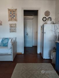 Soggiorno con cucina a vista, camera matrimoniale, bagno