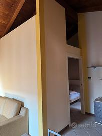 Vendo appartamento Bilocale composto da ingresso su comodo soggiorno/angolo cottura, camera matrimoniale e bagno. L'immobile dotato di ingresso comune con altre due unità, si trova all'interno di una torre in finitura sasso a vista e travi in legno, frutto di un'accurato restauro di un'intero casale poi suddiviso.