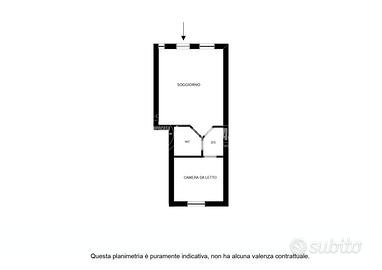 L'appartamento è composto da ingresso su soggiorno con cucina a vista, disimpegno, bagno cieco e camera matrimoniale.