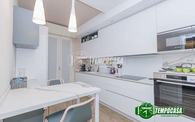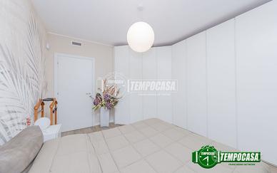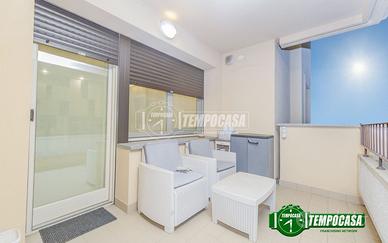 A completare questa splendida soluzione, troviamo un balcone loggiato, ideale per concedersi un momento all'aria aperta, posizionare una comoda seduta o creare un piccolo angolo verde da vivere in ogni stagione.