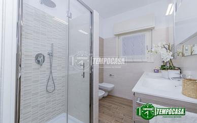 Un comodo disimpegno conduce alla zona notte, dove si sviluppano ambienti pensati per il relax e la praticità quotidiana. Il bagno, completamente nuovo e rifinito con materiali di qualità, è dotato di un elegante box doccia. La camera matrimoniale, ampia e ben proporzionata, offre tutto lo spazio necessario per garantire comfort e tranquillità.
