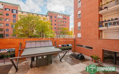L'immobile è in buono stato, come pavimentazione abbiamo la ceramica in tutti gli ambienti, gli infissi sono in pvc e vetro doppio; il riscaldamento è centralizzato a pavimento e l'immobile è dotato anche di impianto di raffrescamento centralizzato. L'appartamento gode di una doppia esposizione: la zona giorno espone a sud, mentre la zona notte espone ad ovest ciò permette all'immobile di avere una buona luminosità e un ottimo riciclo d'aria.