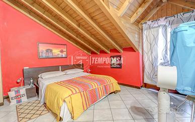 Attraverso una comoda scala interna, si accede al piano superiore dove si trova un'accogliente camera matrimoniale con travi a vista che conferiscono calore e charme all'ambiente, e un secondo bagno, questa volta con vasca, perfetto per chi ama concedersi un momento di relax.