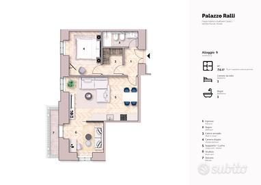 Un angolo di bellezza nel cuore di Trieste Palazzo Ralli, un'elegante dimora storica del 1851 situata nel rione di Scorcola, a pochi minuti dal Borgo Teresiano e dal centro città. Al primo piano, verranno realizzati 16 appartamenti finemente ristrutturati con l'obbiettivo di coniugare l'eleganza dello stile neoclassico con il comfort delle finiture moderne. - All'interno degli appartamenti troverai un design unico: soffitti alti, decorazioni preziose e finiture di pregio - Spazi verdi privati: area verde attrezzata e zona barbecue - Possibilità di acquistare il box o il posto macchina proprio sotto casa Vivere in Palazzo Ralli significa immergersi in un'armonia unica di storia, arte e comfort, circondati da un esclusivo spazio verde condominiale. Un'opportunità imperdibile per chi cerca non solo una casa, ma un'opera d'arte senza tempo. La RESIDENZA 9 si compone da ingresso, living con cucina a vista e zona studio, balcone, anticamera con guardaroba, camera matrimoniale e bagno. Esclusiva di questo appartamento è il balcone che affaccia sul parco condominiale. Metratura commerciale lorda 74,27: appartamento 67,97 mq + 6,3 mq di superficie comune