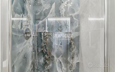 L'immobile è stato recentemente COMPLETAMENTE RISTRUTTURATO con materiali di pregio e finiture di design, basti guardare la pavimentazione in parquet a spina di pesce italiana o il bagno con rivestimento in grès porcellanato effetto marmo che richiama perfettamente gli elementi di arredo come il lavandino.