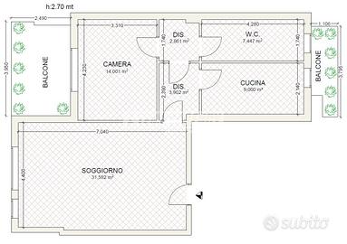 Bilocale extra-large di 87 mq con doppia esposizio