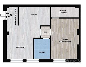 Internamente è composto da: ingresso nell'ampio soggiorno con cucina a vista, disimpegno zona notte, bagno finestrato con box doccia e camera matrimoniale con cabina armadio.