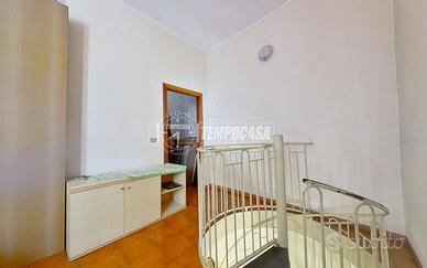 Una scala a chiocciola interna conduce al piano superiore, dove si trova una spaziosa camera da letto matrimoniale, arricchita da un locale accessorio attualmente adibito a cabina armadio, ma facilmente trasformabile in un secondo bagno o in uno spazio guardaroba ancora più ampio.