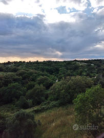 balconi uno che si affaccia su strada chiusa,l altro che si affaccia sulla sughereta, ascensore e giardino condominiale,a due passi dal capolinea Autolinee Troiani direzione Santa Palomba per prendere il treno stazione Termini in 15 minuti e sempre a 100metri potete trovare sia il liceo Pascal,asilo nido Aurora Boreale,scuola element.Margherita hack, ,tabbaccaio, supermercato il Carrello,bar,palestra Nippon,estetista,pizzeria,fruttivendolo,casabella,studio medico ,farmacia Albertazzi etc. ottima posizione fornita di tutto.