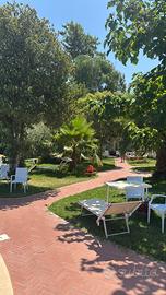 Bilocale in parco con Piscina, con patio esterno, soggiorno, cucina, camera da letto, bagno e ripostiglio.