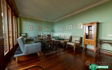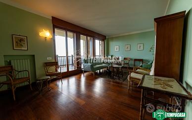 Internamente si compone di : ingresso su disimpegno, soggiorno con accesso al balcone vivibile con vista panoramica, angolo cottura, bagno con vasca e camera matrimoniale. La pavimentazione è in parquet tranne in cucina e in bagno dove troviamo la ceramica; il riscaldamento è centralizzato a radiatori con termovalvole e gli infissi sono in legno vetro doppio.
