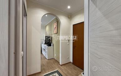 Ingresso che conduce a un'ampia cucina abitabile, luminosa camera da letto dotata di cabina armadio ricavata dal ripostiglio e armadio a muro, bagno finestrato con pratico box doccia e balcone.
