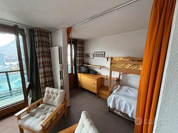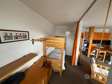 Soggiorno condivano letto, angolo cottura, cameretta con letto a castello, bagno con vasca e bidet, vanno solo wc. Terrazzino vista piste.
