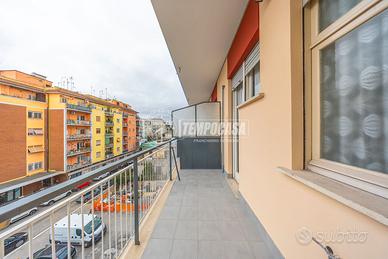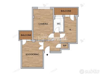 L'appartamento è così composto: ingresso su disimpegno, ampio soggiorno con BALCONE, cucina abitabile con un SECONDO BALCONE, camera matrimoniale, comodo ripostiglio, e bagno finestrato.
