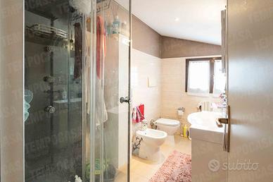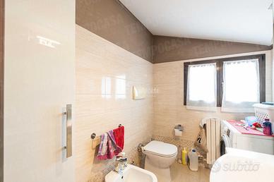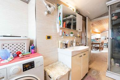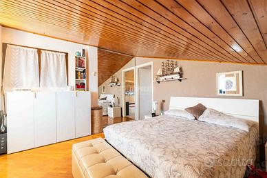 Il bagno, completamente ristrutturato nel 2023, è dotato di box doccia moderno e di sanitari appoggiati, conferendo all'ambiente un aspetto fresco e contemporaneo. L'ampia camera da letto padronale, anch'essa rivestita in parquet, offre uno spazio confortevole e accogliente, perfetto per garantire il massimo relax al termine di ogni giornata.