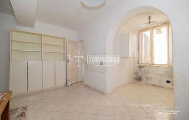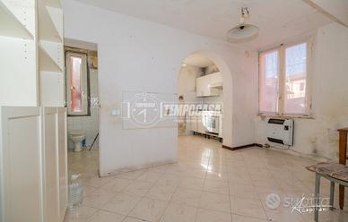 Ingresso su corridoio, camera da letto matrimoniale, salotto con cucina a vista ed un bagno finestrato.
