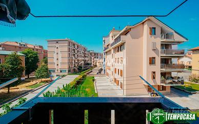 La soluzione ci accoglie nel disimpegno di ingresso dal quale possiamo accedere al soggiorno con cucina a vista e balcone, bagno completo e camera con secondo balcone.
