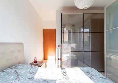 camera matrimoniale con due armadi con ante scorrevoli, bagno con doccia, stanza ripostiglio, stanza guardaroba.