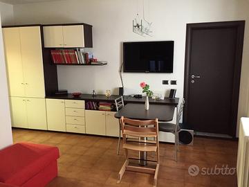 In contesto storico, in zona molto ben servita da mezzi pubblici e da negozi di prima necessità, in piccola realtà tranquilla, affitto bilocale 65 mq commerciali (45 mq netti), completamente arredato costituito da soggiorno con angolo cottura (separato da arredi), bagno molto spazioso, camera matrimoniale e studio/cameretta. L'appartamento è stato di recente completamente ristrutturato (caldaia nuova, sanitari nuovi, copertura isolata, ecc) con finiture di buon livello (maniglie OLIVARI, vetri insonorizzanti) ed arredato a nuovo. L'arredo comprende cucina completa di frigorifero, forno, forno a microonde, lavastoviglie ecc.; soggiorno con tavolo allungabile 3/5 posti, divano letto matrimoniale, mobile a giorno; camera matrimoniale con letto a cassone con rete ortopedica e armadio 4 stagioni con ante scorrevoli in cristallo; bagno con vasca/doccia con parete in cristallo, rubinetterie GROHE termostatiche, lavatrice SIEMENS; cameretta con armadio capiente. Antenna tv centralizzata. Non ci sono spese condominiali. Classe energetica in fase di revisione. Recente installazione di impianto VMC per ricambio aria interna limitando le dispersioni di calore. Preferenze per locazioni di durata superiore all'anno, meglio se a referenziati. No animali Subito disponibile