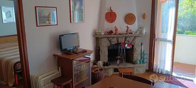 Bilocale soggiorno con angolo cottura e caminetto, camera letto matrimoniale più due letti castello, bagno, posto auto in garage comune. Ammobiliato.