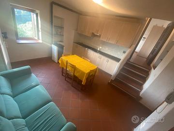 Appartamento nel primo entroterra di Andora a circa 4 km. dal mare, immerso fra gli ulivi in tipico borgo ligure in pietra ed in pieno recupero di valorizzazione, inserito al primo piano in un piccolo condominio con doppio riscaldamento autonomo, termosifoni ACS e cucina alimentati da contatore gpl + piacevole ed economica stufa a pellet nell'ampia cucina living, bagno finestrato e completo con box doccia, camera da letto con dislivello di cinque scalini da salire, arredato e volendo con letto matrimoniale a soppalco disponibile da rimontare come in foto. Senza balconi, dispone di fascia di terreno comune destinata alla sosta delle auto. Comodo in bicicletta lungo l'argine sinistro del Merula per raggiungere le spiagge o la ciclabile del ponente ligure di prossima ultimazione fino alla stazione del treno. Dichiarazione di conformità impianti elettrico e gas, APE scadenza 2029, non consiglio adatto a persone con disabilità motorie a causa della presenza di rampa di scalini. Trattabile. Valuto anche proposte di locazione.