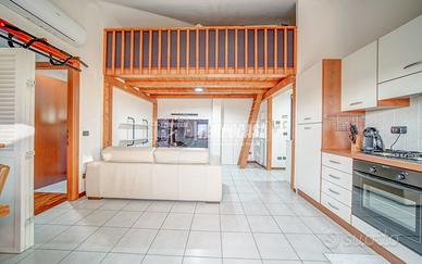 Un soppalco sopra la zona living crea un comodo spazio jolly perfetto come studio, area relax o zona ospiti. Dalla zona giorno si accede al primo terrazzo, ideale per pranzi all'aperto o momenti di relax.