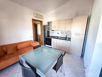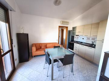 Propone in locazione bilocale in palazzina composto da sala con angolo cottura, camera matrimoniale, disimpegno e bagno. e due ampi balconi. Arredato ed accessoriato.