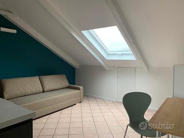 In un piccolo edificio di 4 unità progettato per giovani e studenti, affittasi bilocale mansardato appena ristrutturato e arredato a nuovo. Molto luminoso, composto da soggiorno-cucina con abbaino e balconcino, camera da letto, bagno e ripostiglio. Doppia aria con ampi lucernari, aria condizionata e riscaldamento autonomo. Cucina completa dotata di piano a induzione, forno e lavastoviglie. La locazione incluse l'utilizzo dello spazio comune costituito da piccolo giardino e cortile attrezzati, condivisi con gli altri giovani della casa, spazio interno per le biciclette. Comodo per il Campus Einaudi, Palazzo Nuovo, IAAD e Scuola Holden. Fermate del tram n 4 a 50 metri con cui si raggiunge facilmente il centro città e altri Poli Universitari. Ben collegato con le stazioni ferroviarie, parcheggio libero gratuito, pista ciclabile a 200 metri. Mercato rionale ben fornito e supermercati in prossimità. II canone di affitto si intende oltre spese