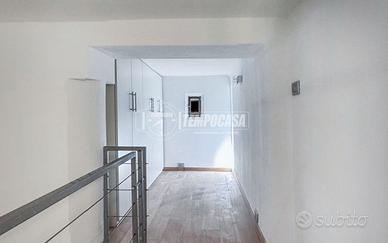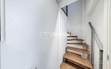 Salendo dalla scala interna, si raggiunge la zona notte soppalcata: camera matrimoniale in loft, arricchita da una suggestiva passerella in vetro che conduce ad un'ulteriore area, ideale come guardaroba o spazio organizzativo su misura.