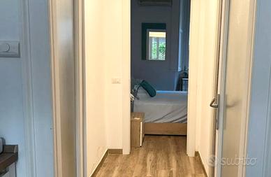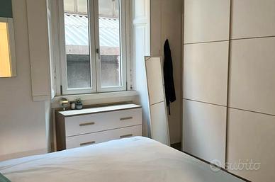 Affittiamo comodo bilocale luminoso suddiviso in: ingresso su soggiorno living con cucina a vista interamente arredato e fornito di elettrodomestici, una camera matrimoniale con comodini, armadiatura ad ante scorrevoli, specchio a muro, cassettiera e ampia finestra, bagno moderno con sanitari nuovi e lavatrice.