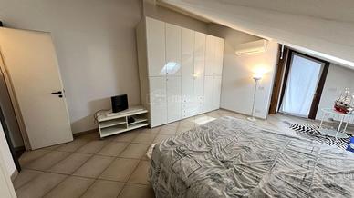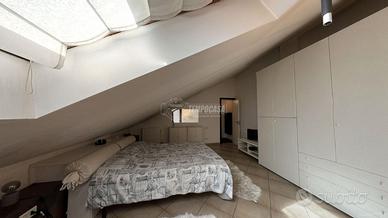 Al piano superiore troviamo un'ampia camera matrimoniale con bagno privato e un terrazzino ideale per godersi momenti di relax all'aria aperta, ammirando le viste panoramiche del suggestivo centro storico di Monza.