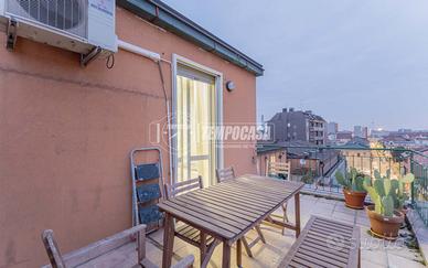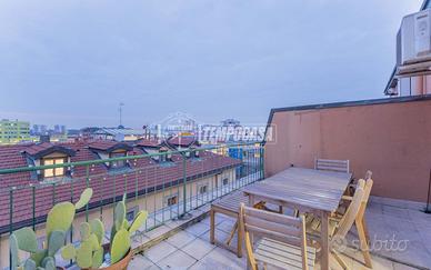 Troviamo poi la camera da letto, molto spaziosa con accesso sul TERRAZZO, che offre una vista su tutta Milano!