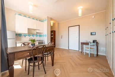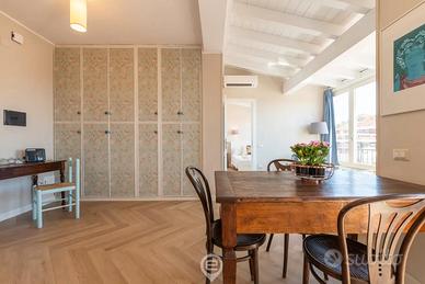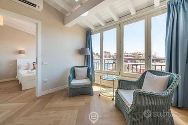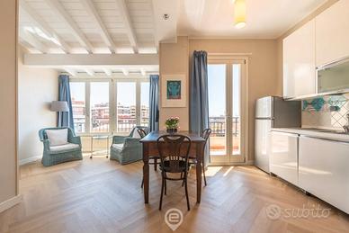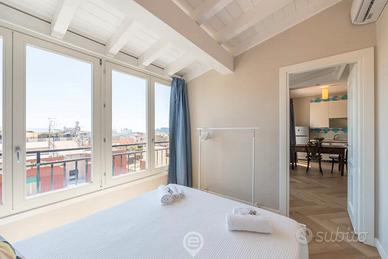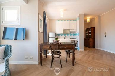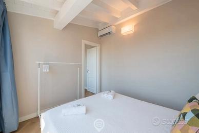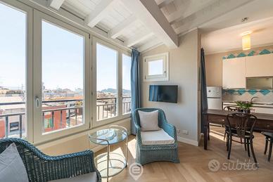 L'appartamento, luminoso e arredato con gusto, è composto da soggiorno con angolo cottura attrezzato, camera matrimoniale, bagno e balcone privato con vista mare. Gli ambienti sono accoglienti e funzionali, ideali per una coppia o un singolo in cerca di un soggiorno confortevole in città.