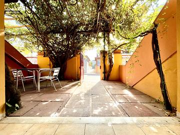VILLASIMIUS - In via Nievo, in zona residenziale pianeggiante e vicina ai servizi, all'interno di uno stabile ben costruito e ottimamente curato, bilocale al piano terra con ampio spazio esterno.