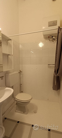 Bagno con doccia, scaldabagno nuovo, rubinetteria nuova.