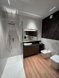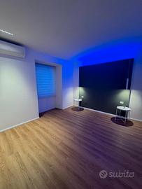 L'appartamento dispone di impianti elettrici nuovi con illuminazione LED di design a basso consumo, porta blindata di classe 3, climatizzatore inverter LG doppio split caldo/freddo classe A+++ e divano in pelle Poltronesofà made in Italy.