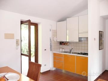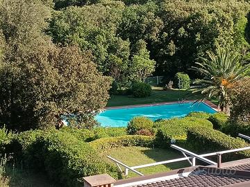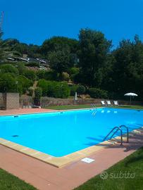 Appartamento , in ottime condizioi, in zona residenziale immerso nel verde. E' composto da soggiorno con angolo cottura e zona pranzo; camera matrimoniale; ampio bagno con doccia; due terrazze di cui una antistante l'ingresso, l'altra attrezzata con ingresso dal soggiorno e vista sulla piscina ; posto auto coperto e piscina condominiale di mt 18x9