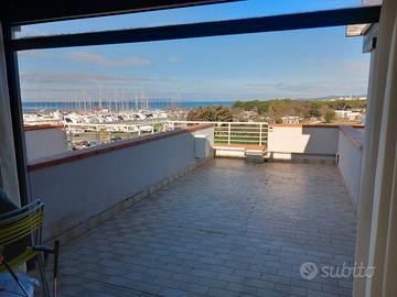 Al piano superiore tramite scala condominiale si accede alla ampia terrazza solarium di proprietà vista mare golfo tramonto.