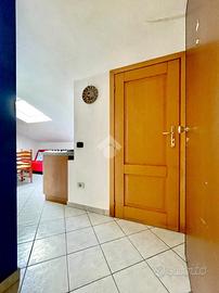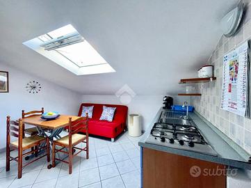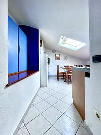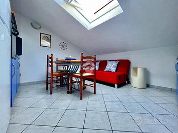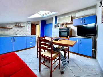 NUORO - Via Ichnusa, in zona residenziale tranquilla e servita, mansarda rifinita, tipologia bilocale. Con ingresso dal vano scala condominiale, utilizzando uno a scelta tra scale e ascensore, si arriva all'ingresso dell'immobile. Varcata la soglia d'ingresso, si viene accolti da un locale adibito a luminoso pranzo-soggiorno con parete cottura. Separato rispetto a questa zona trova spazio un secondo locale adibito a camera da letto matrimoniale, con accesso a un ripostiglio, attualmente allo stato grezzo, ricavato nel sottotetto. Completa l'interno, un bagno completo con doccia e finestrato. Al piano seminterrato è presente un comodo vano cantina.L'immobile si presenta in buono stato manutentivo, è provvisto di condizionamento autonomo e viene venduto con arredi. Consigliamo l'immobile a chi è alla ricerca di un punto d'appoggio con un budget contenuto. Non mutuabile. Costi condominiali: 120 euro all'anno.