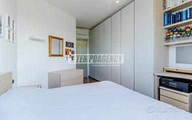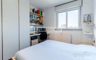 Proponiamo in vendita un elegante bilocale di 69 mq, finemente ristrutturato con materiali di qualità e soluzioni su misura difficili da trovare in zona. L'immobile, situato al secondo piano con ascensore in via Manzù 2, nel cuore di Santa Giulia, si distingue per la sua posizione angolare, che garantisce un'esposizione ottimale e ambienti naturalmente luminosi durante tutto il giorno. La soluzione è disponibile per il rogito da Settembre 2026. L'ingresso introduce in una raffinata zona living, impreziosita da porte interne in vetro fumé, arredi realizzati su misura e da un impianto di climatizzazione che garantisce comfort in ogni stagione. Il soggiorno si apre su un terrazzo vivibile, uno spazio ideale per momenti di relax o pranzi all'aperto. La cucina, semi a vista e finestrata, offre un ambiente pratico e ben organizzato, perfetto per chi ama cucinare senza rinunciare all'eleganza. Un disimpegno conduce alla zona notte, composta da una camera matrimoniale ampia e luminosa, e da un bagno finestrato dotato di box doccia moderno. Inoltre è presente anche un comodo ripostiglio ad uso lavanderia. Ogni dettaglio dell'appartamento è stato studiato con cura: finiture ricercate, ottima distribuzione e complementi su misura che rendono la casa pronta da vivere senza alcun intervento. A completare questa proposta di pregio troviamo box auto e cantina, entrambi inclusi nel prezzo, un valore aggiunto raro e molto richiesto nella zona. Santa Giulia è uno dei quartieri più strategici e in crescita di Milano: a pochi minuti a piedi si trovano la metro M3, il passante ferroviario e diverse linee autobus, di Rogoredo. Nelle immediate vicinanze sono presenti supermercati, farmacie, ambulatori medici, bar, ristoranti e negozi, rendendo la quotidianità comoda e ben servita. Una soluzione ideale per chi cerca un appartamento chiavi in mano, - Classe: B - IPE: 1.00 kWh/mq anno