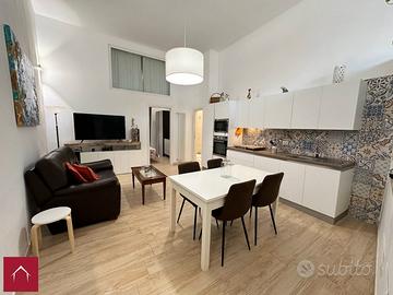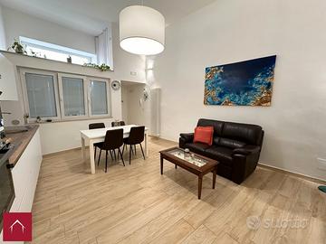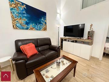 Si propone in vendita bilocale ristrutturato e completamente arredato (64mq piano rialzato + 71mq cantinato), all'interno di un fabbricato in buono stato di manutenzione, in Via Roma n.111, a Barletta.