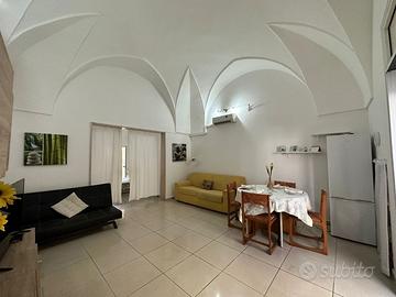 L'immobile completamente ristrutturato è indipendente e si compone come segue: ingresso in ampio soggiorno, una camera da letto, un cucinotto semi-abitabile con angolo cottura, un bagno completo di sanitari con doccia e antibagno, e un comodo scoperto retrostante utile per pranzare o cenare all'aperto.