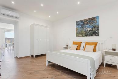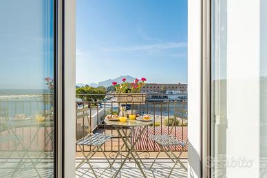 L'appartamento si apre su un accogliente disimpegno, da cui si accede ad un'ampia cucina-soggiorno luminosa, perfetta per momenti di relax o conviviali. Da qui, una porta finestra conduce al primo dei due balconi, che regala una vista panoramica impareggiabile sul mare. La zona notte comprende una camera matrimoniale spaziosa, anch'essa dotata di un secondo balcone, che permette di godere di una straordinaria luminosità. Completa l'appartamento un elegante bagno, dotato di doccia e finiture moderne.