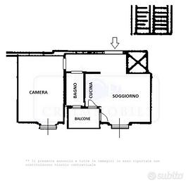 Lappartamento è composto da: ingresso, soggiorno con cucina a vista e accesso al balcone, disimpegno, camera matrimoniale e bagno.