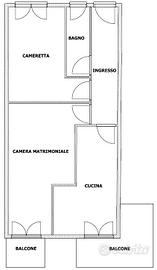 Vendesi appartamento luminoso composto da 2 camere, bagno, cucina, balcone con vista aperta sul verde.